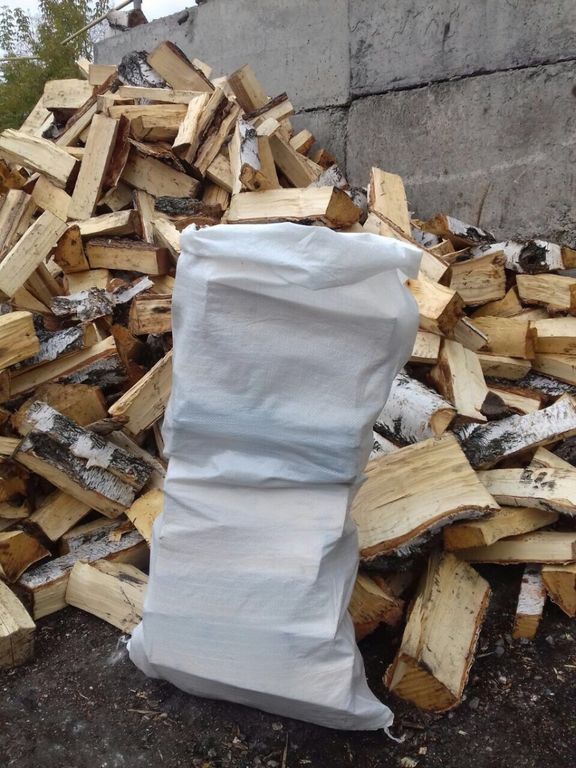 Дрова березовые в плотных белых мешках по 40 кг